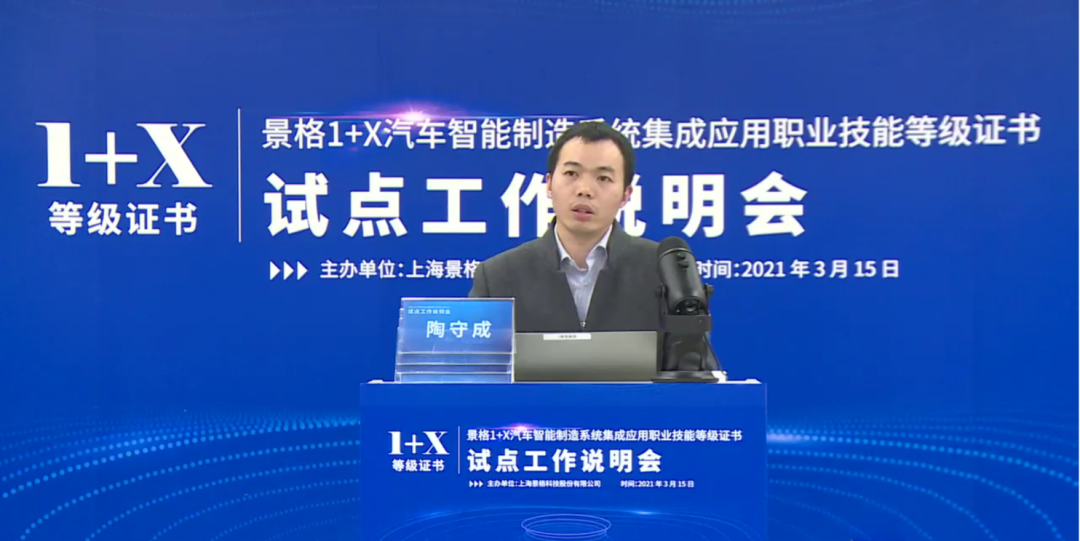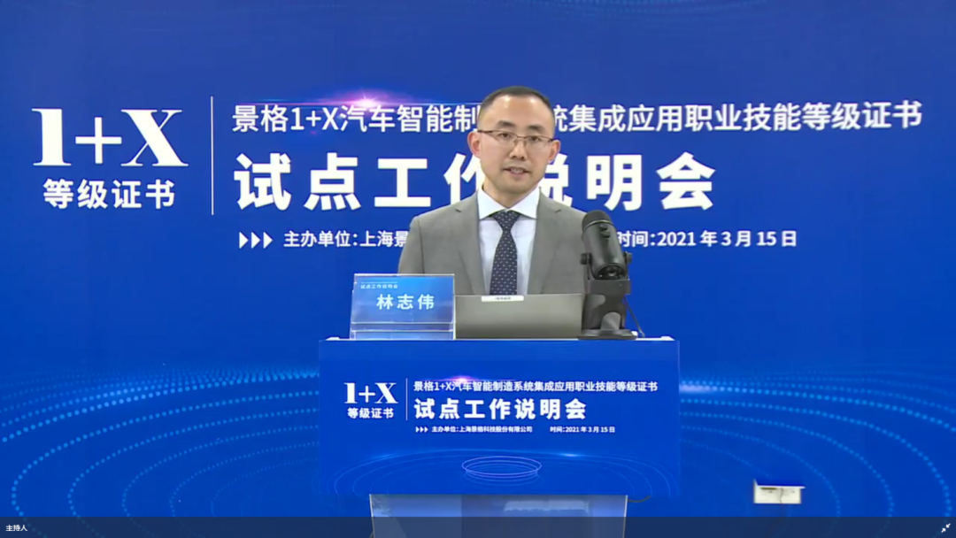 為貫徹《國家職業(yè)教育改革實(shí)施方案》文件精神,落實(shí)《關(guān)于在院校實(shí)施“學(xué)歷證書+若干職業(yè)技能等級證書制度”試點(diǎn)方案》要求,促進(jìn)有關(guān)院校對汽車智能制造系統(tǒng)集成應(yīng)用職業(yè)技能等級標(biāo)準(zhǔn)和試點(diǎn)工作的深入了解,上海景格科技股份有限公司作為教育部認(rèn)定的第四批職業(yè)教育培訓(xùn)評價組織,組織主辦了“汽車智能制造系統(tǒng)集成應(yīng)用職業(yè)技能等級證書試點(diǎn)工作線上說明會”,本次會議于2021年3月15日順利召開。本次說明會邀請了職教專家、企業(yè)代表與院校專家分別就1+X相關(guān)政策、企業(yè)人才需求、汽車智能制造系統(tǒng)集成應(yīng)用職業(yè)技能等級證書和標(biāo)準(zhǔn)以及院校書證融通經(jīng)驗(yàn)等內(nèi)容進(jìn)行了介紹,共同探討在1+X證書制度下汽車智能制造產(chǎn)業(yè)人才培養(yǎng)的提升之路。