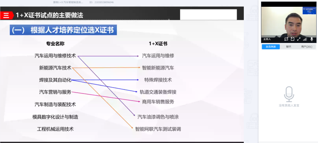 湖南工業(yè)職業(yè)技術(shù)學(xué)院是被教育部、財(cái)政部列入第一類高水平學(xué)校建設(shè)A檔單位,景格科技也非常榮幸的邀請到了來自汽車專業(yè)的王志輝主任為我們分享《1+X教學(xué)改革的人才培養(yǎng)模式探索經(jīng)驗(yàn)和思路》,從多個維度分享了學(xué)院關(guān)于1+X的探索情況,特別是1+X的具體落地方法。王主任的分享為各個院校提供了很好的借鑒。