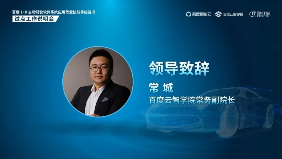 會議首先由百度云智學院常務副院長常城致辭。百度作為全球領先的自動駕駛技術企業,在2019年也取得了長足的進步。完成了自動駕駛、車路協同、智能車聯三大平臺的開放升級,實現了全面布局自動駕駛和智能交通。在本次百度1+X自動駕駛軟件系統應用職業技能等級證書的開發中,百度聯合景格科技、行業產業及教育專家共同推進,未來也會在自動駕駛技術與院校人才培養的融合中,與院校有更深入、更緊密的合作。