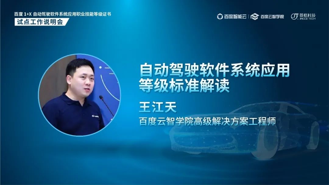 百度云智學院高級解決方案工程師王江天帶來主題發言《自動駕駛軟件系統應用等級標準解讀》,對自動駕駛軟件系統應用等級證書做了詳盡細致的解讀。