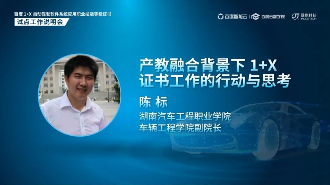 湖南汽車工程職業學院是雙高計劃A檔專業群院校,建有全國高職院校唯一以汽車智能駕駛技術研究為重點、汽車全產業鏈協同創新平臺。湖南汽車工程職業學院車輛工程學院副院長陳標為我們分享《產教融合背景下1+X證書工作的行動與思考》,從多個維度分享了學院關于1+X的探索情況,特別是1+X的具體落地做法。