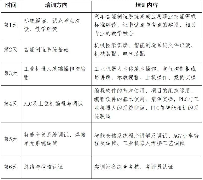 本次培訓限定名額20人,優先保證“汽車智能制造系統集成應用職業技能等級”證書試點院校不超過2個培訓名額,名額有限,報完為止。