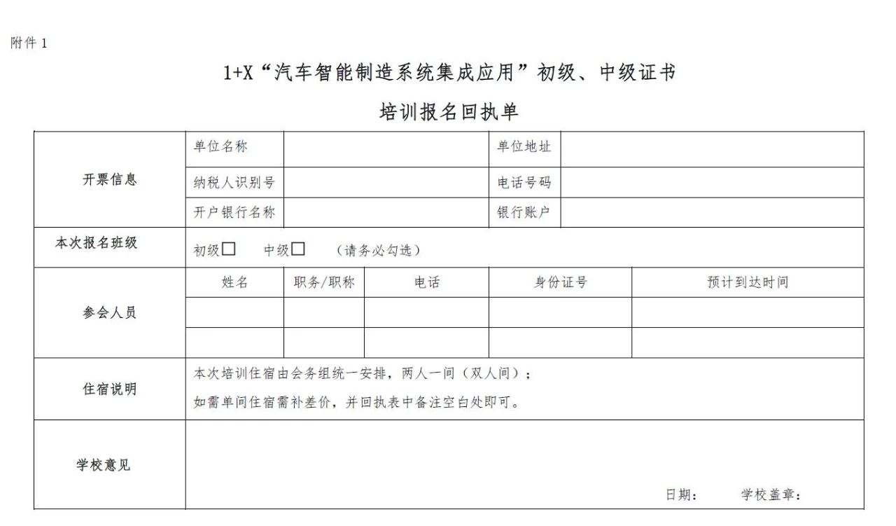 ※備注:汽車智能制造系統集成應用職業技能等級證書試點培訓+學校+姓名