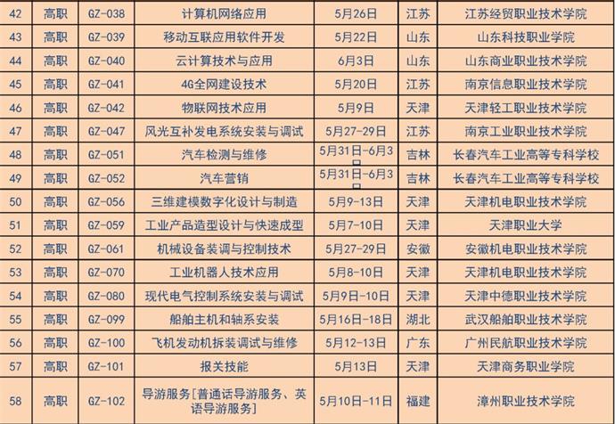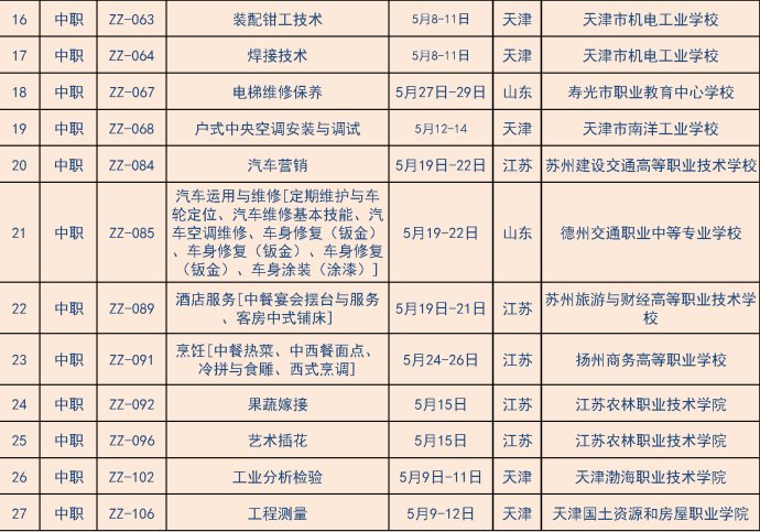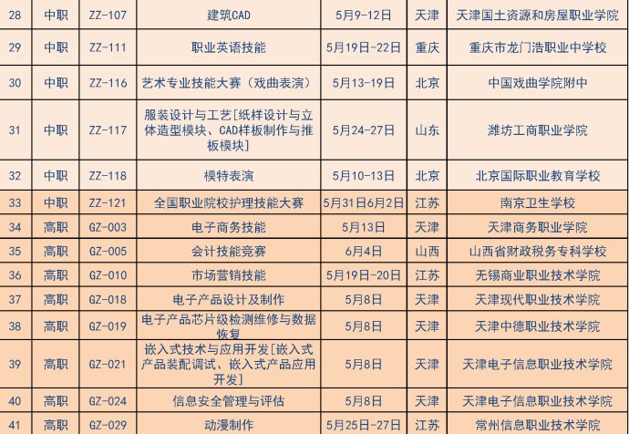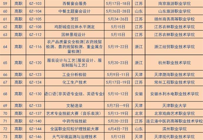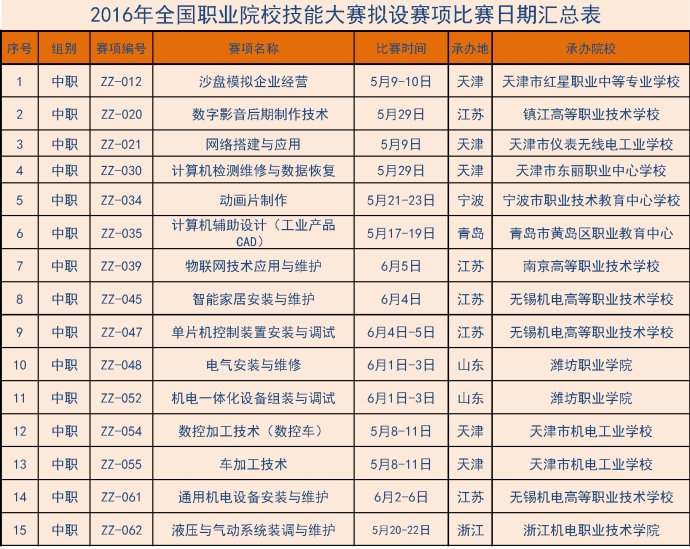 2016年全國職業院校技能大賽擬設賽項比賽日期匯總表