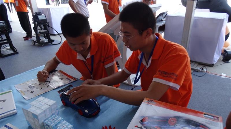 景格現場的展區也同時吸引了很多職校學生前來參與體驗,圖為學生拼裝賽車及閱覽景格職教云立方學習相關資料。在這樣一場全國性職業教育技能大賽的交流盛宴中,景格科技在眾星閃耀的展區中秀出了自己獨特的風采。