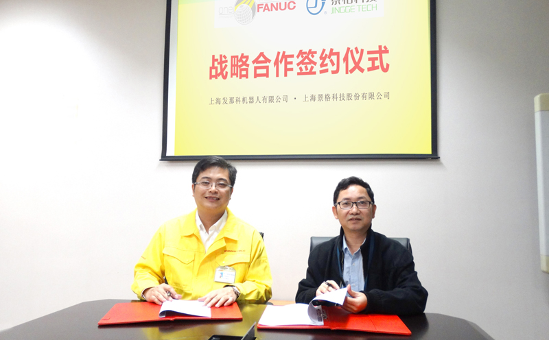 2017年,上海景格科技股份有限公司與上海FANUC機(jī)器人有限公司正式簽約達(dá)成戰(zhàn)略合作關(guān)系,攜手研發(fā)工業(yè)機(jī)器人相關(guān)專(zhuān)業(yè)課程、教具等合作項(xiàng)目。景格科技鄭玉宇先生、發(fā)那科戴琦部長(zhǎng)共同出席并完成現(xiàn)場(chǎng)簽約。