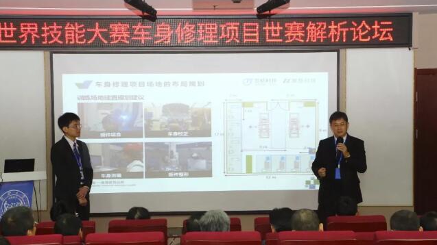 本次賽項辨析由專題講座、案例分析、專家診斷等多種形式開展,為期兩天?,F場邀請大國工匠陶巍博士和世界技能大賽車身修理項目中國技術指導專家組組長葉建華專家共同進行世賽說明與經驗分享。