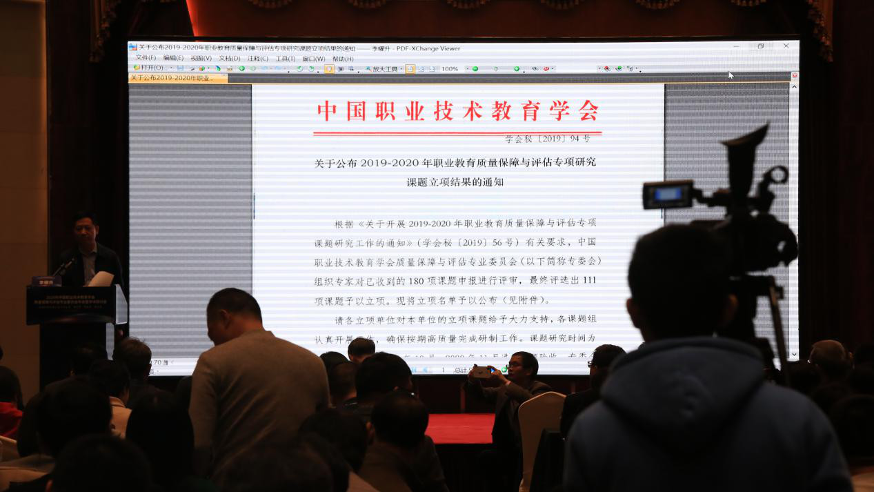 課題立項,既是中國職業技術教育學會16字方針學術立會的重要載體,也是質量管理的重要手段。在報告后由李曜升常務副會長宣讀關于公布2019-2020年職業教育質量保障與評估專項研究課題立項結果的通知,中國職業技術教育學會質量保障與評估專業委員會組織專家對已收到的180項課題申報進行評審,最終評選出111項課題予以立項。