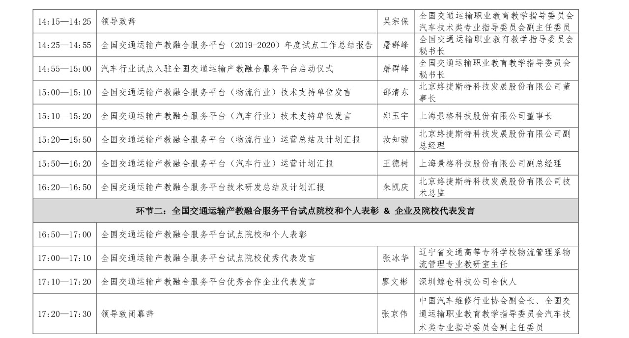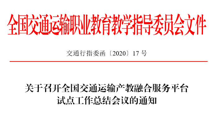 自2019年5月全國交通運輸產教融合服務平臺(以下簡稱“平臺”)物流專業試點啟動大會召開以來,各試點單位,按照《全國交通運輸產教融合服務平臺運營實施方案》中的計劃與安排,有序進行試點工作。為對一年來試點工作中的取得的成果和遇到的問題進行總結,明確平臺下一步運營及開展汽車相關專業試點工作計劃,進一步促進產教融合,充分發揮平臺的價值,提高平臺影響力,經研究決定,擬于2020年7月16日組織召開平臺試點工作總結會議。現將有關事項通知如下: