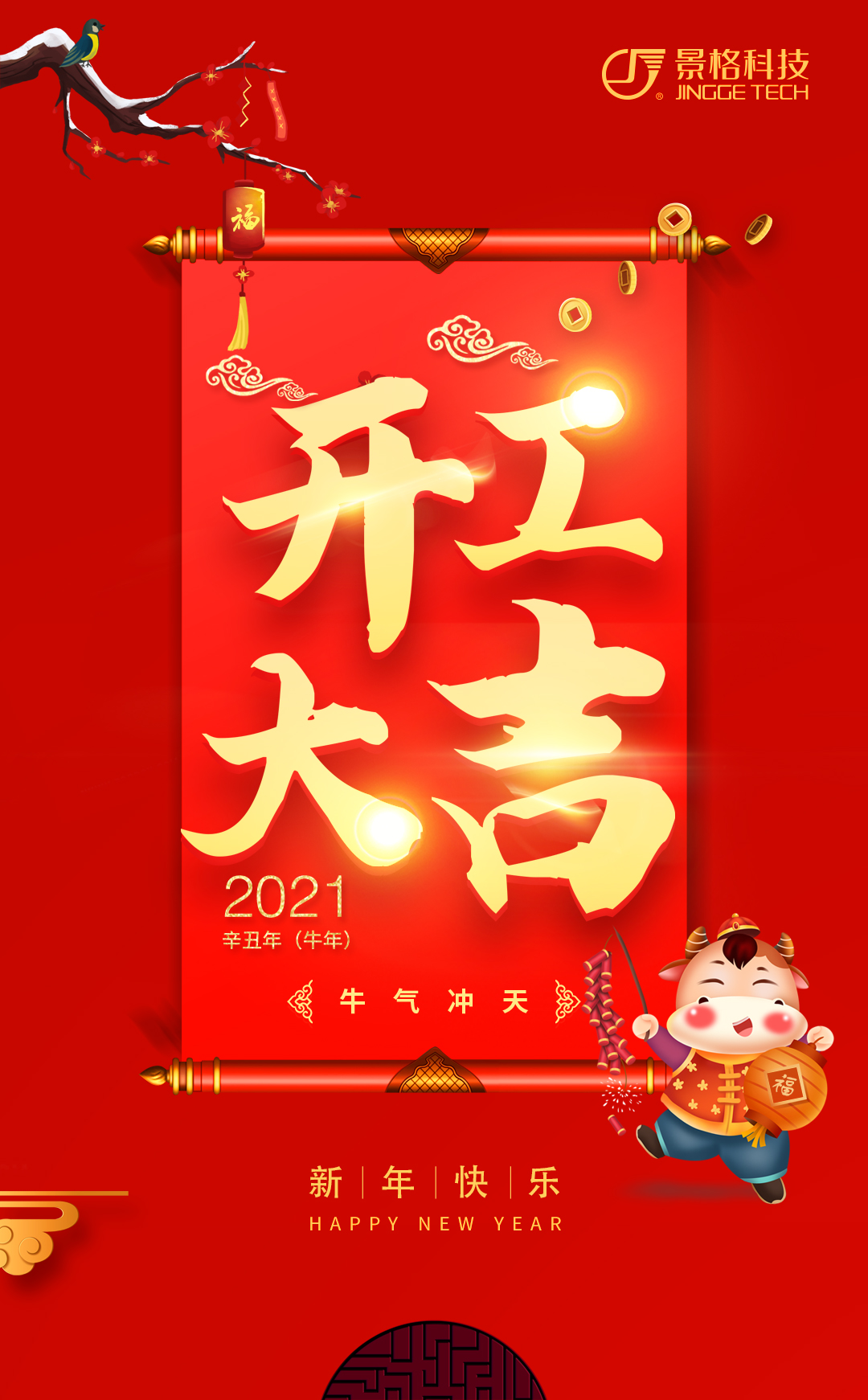 2月19日,景格科技2021辛丑年新春開工儀式在上海總部成功舉行。董事長鄭玉宇及景格全體伙伴共同參加活動。