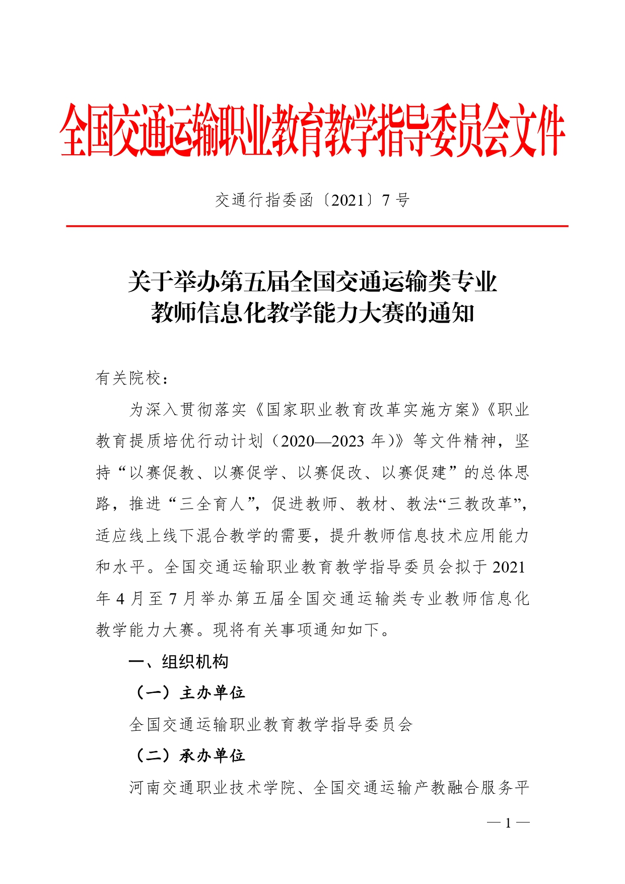 關于舉辦第五屆全國交通運輸類專業教師信息化教學能力大賽的通知