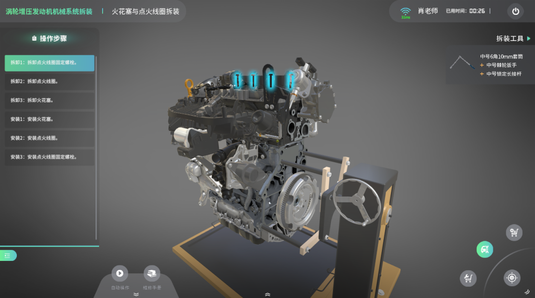賽項包含了:虛擬仿真實驗項目包含四個項目虛擬拆裝比賽純電動汽車動力系統虛擬拆裝臺(適用于比亞迪E5)、傳統汽車動力系統虛擬拆裝臺(大眾EA888三代1.8TSI)、純電動汽車動力系統虛擬故障診斷車(適用于比亞迪E5)、傳統汽車動力系統虛擬故障診斷車(大眾EA888二代2.0TSI),賽事全程在上海景格科技股份有限公司自主研發的大賽自主考試平臺上進行。