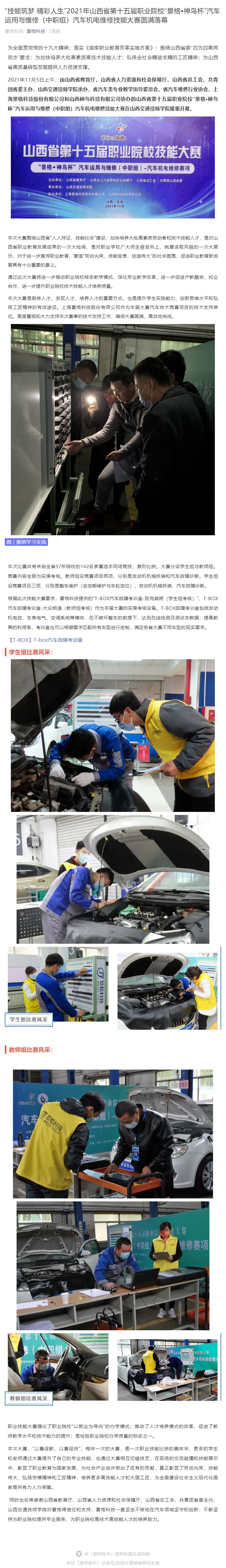 “技能筑夢 精彩人生”2021年山西省第十五屆職業院校“景格?神鳥杯”汽車運用與維修(中職組)汽車機電維修技能大賽圓滿落幕