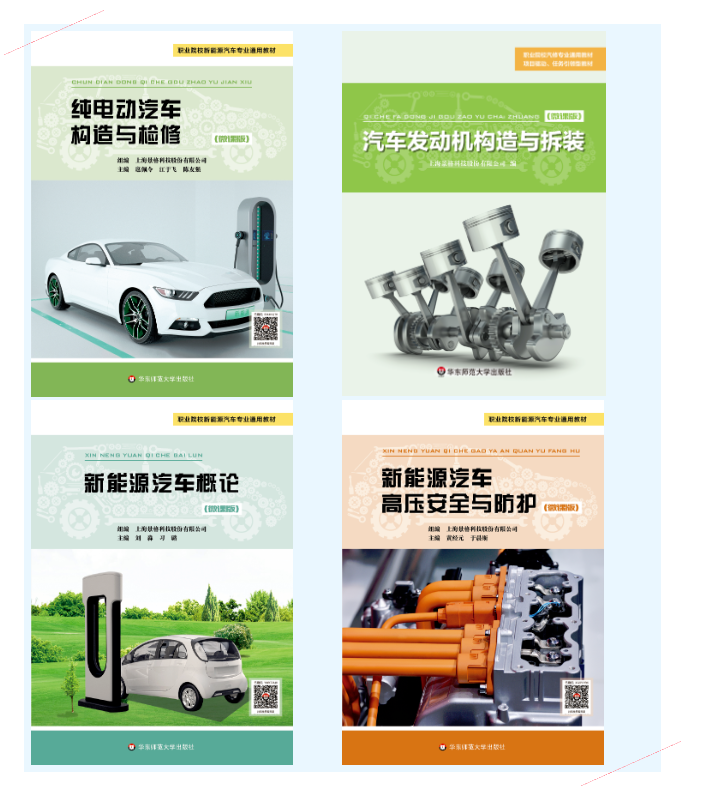 新申報入選的教材由景格科技與華東師范大學出版社合作出版,其中中職類教材3本,包括純電動汽車構造與檢修、汽車發動機構造與拆裝、新能源汽車概論;高職類教材1本,主要是新能源汽車高壓安全與防護。景格科技始終秉承著“創新、專業、用心、分享”的理念,積極探索新的教育模式、新的教材研發方法,這次成功入選是對景格科技不斷創新的肯定和認可。