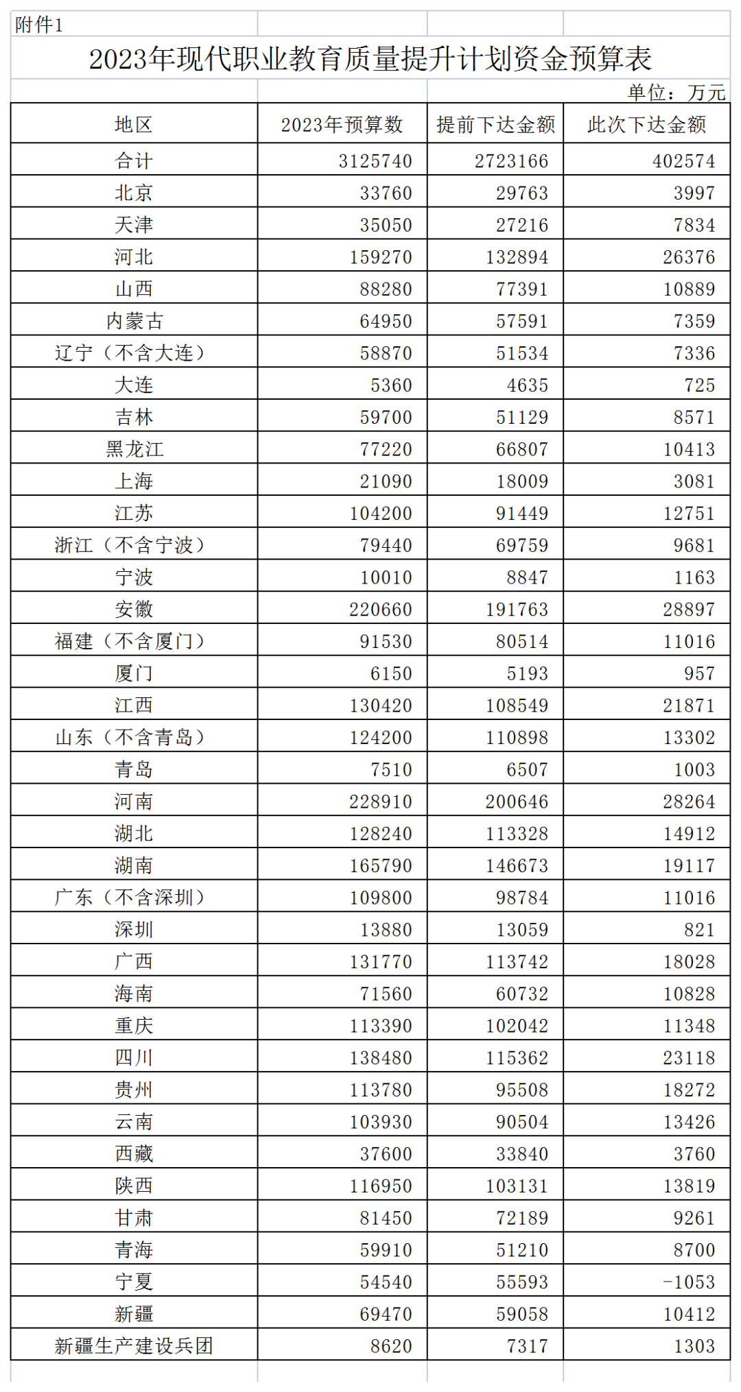 近日從財(cái)政部獲悉,教育部、財(cái)政部印發(fā)《關(guān)于下達(dá)2023年現(xiàn)代職業(yè)教育質(zhì)量提升計(jì)劃資金預(yù)算的通知》,下達(dá)2023年現(xiàn)代職業(yè)教育質(zhì)量提升計(jì)劃資金預(yù)算。此次下達(dá)金額為402574萬元,加上提前下達(dá)的2723166萬元,共下達(dá)2023年現(xiàn)代職業(yè)教育質(zhì)量提升計(jì)劃資金預(yù)算3125740萬元,比上年增加10億元。