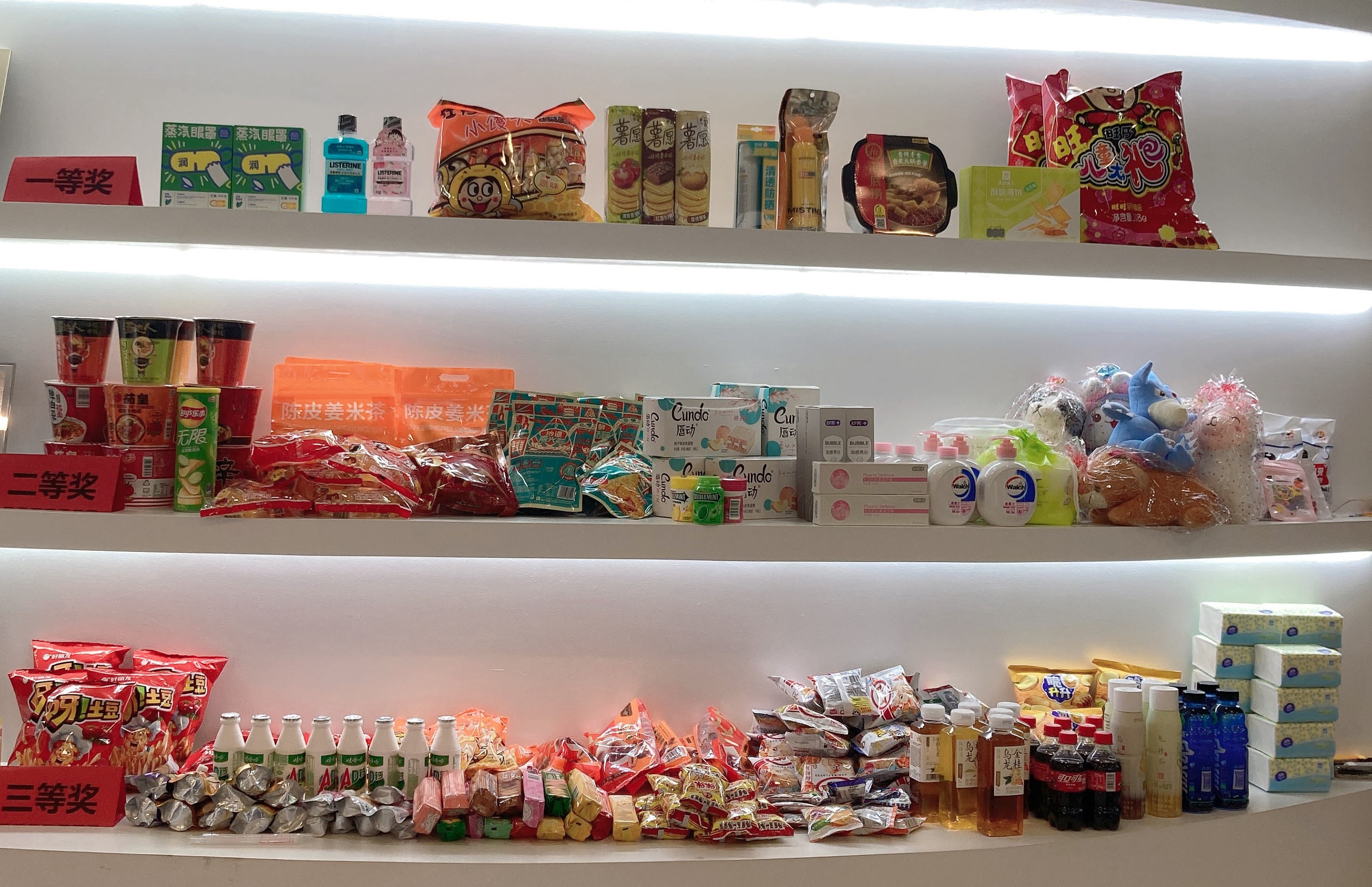 一球在手,獎品說有就有。大家充分發揮自己的判斷力,鎖定裝有獎勵的紙杯,再通過巧妙地力道,將乒乓球精準地投入杯中,突破重重障礙,就能叩開各種獎項。在一片乒乓聲中,充滿著或驚喜、或遺憾的驚呼,好不熱鬧。
