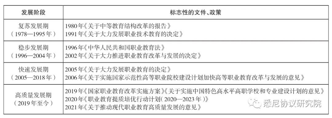 表1 我國職業(yè)教育發(fā)展的階段劃分(1978年至今)