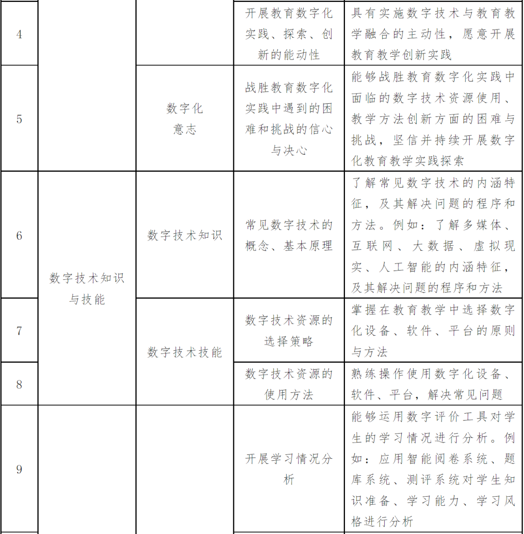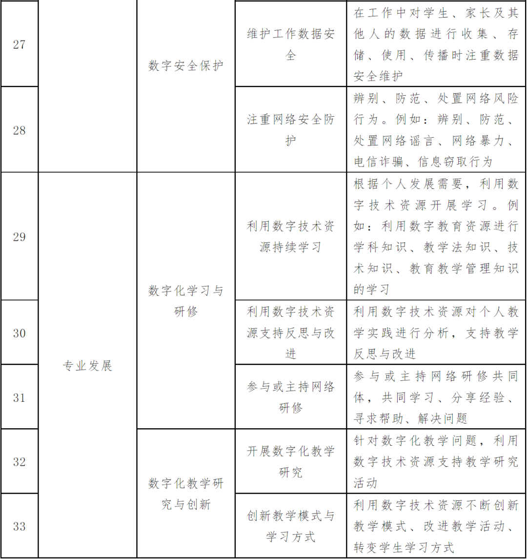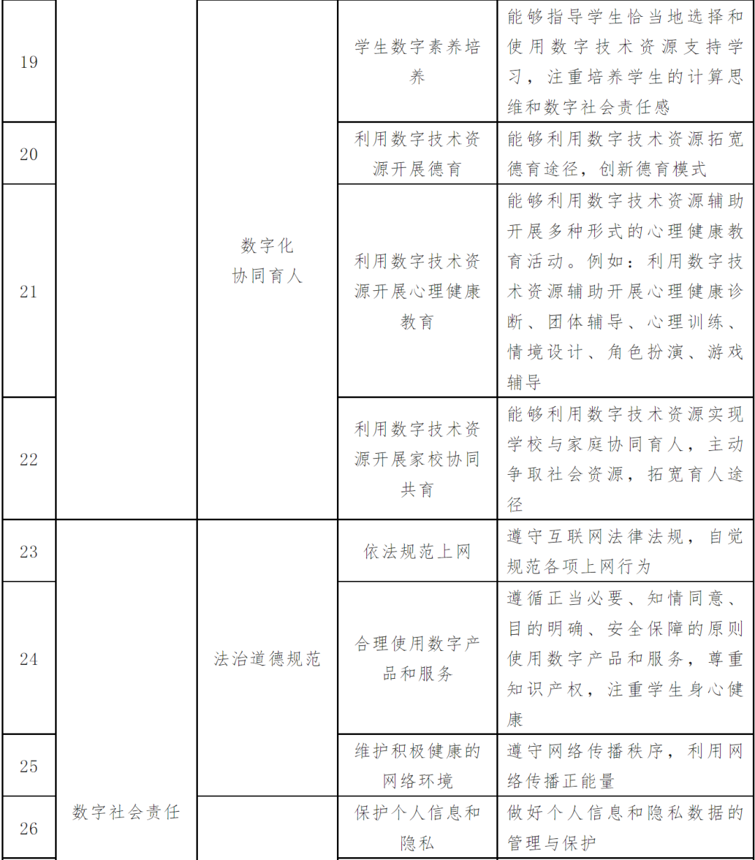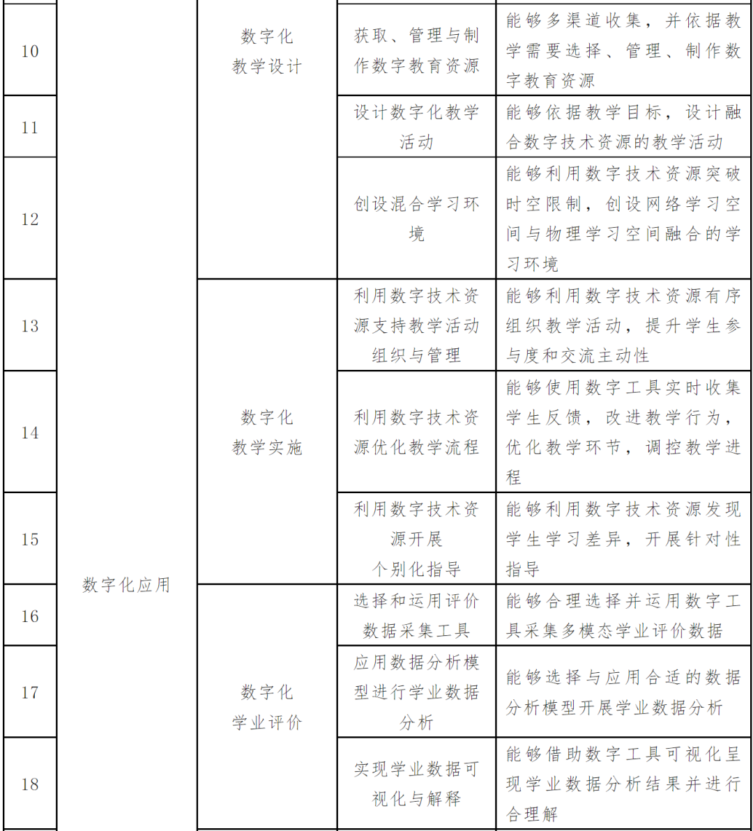 《教師數(shù)字素養(yǎng)》教育標(biāo)準(zhǔn)維度表