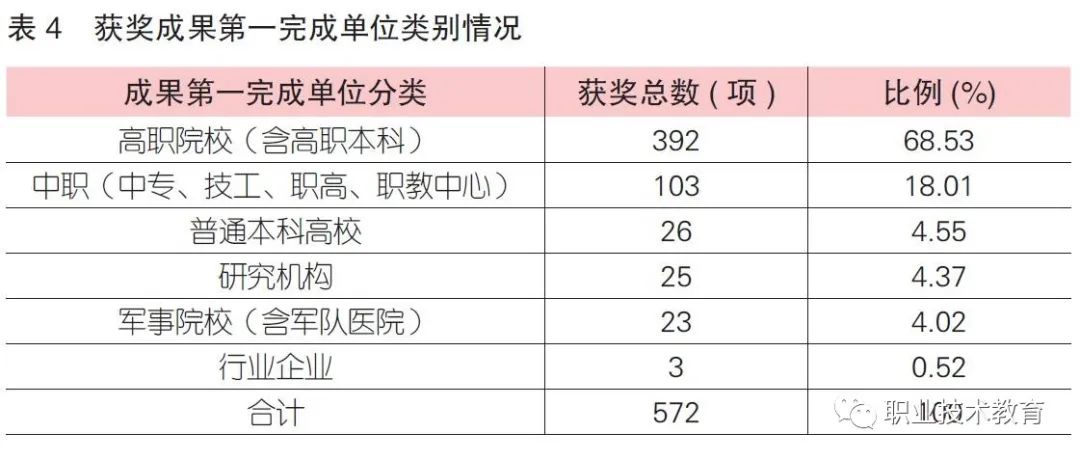 一是單獨完成的成果共80項,高職院校占主導地位。無論一等獎、二等獎還是獲獎總數,高職院校均居榜首,獲獎總數占比達45%。