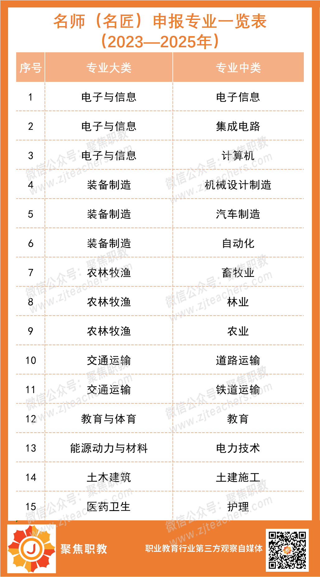 5.名師(名匠)申報(bào)專業(yè)一覽表(2023—2025年)