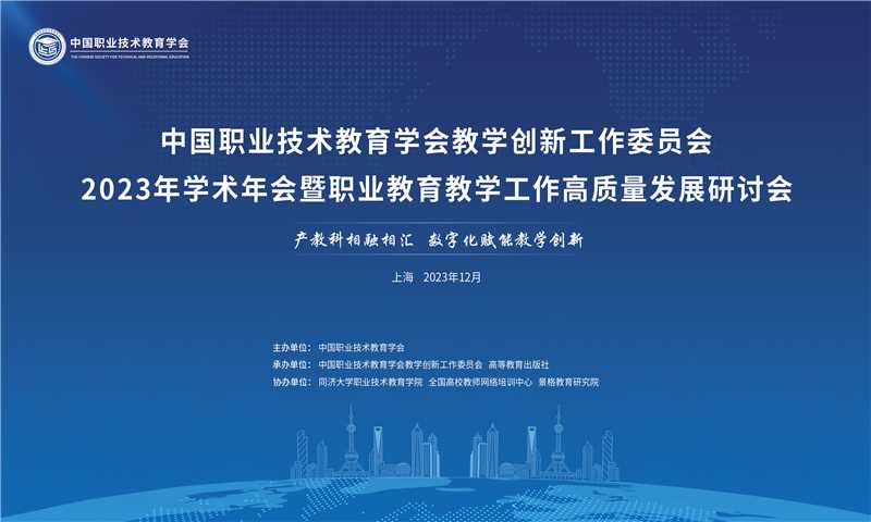 這場中國職業技術教育學會教學創新工作委員會2023年學術年會暨職業教育教學工作高質量發展研討會,由中國職業技術教育學會主辦,中國職業技術教育學會教學創新工作委員會、高等教育出版社承辦,同濟大學職業技術教育學院、全國高校教師網絡培訓中心、景格教育研究院協辦。會議以“產教科相融相匯,數字化賦能教學創新”為主題,旨在落實“一體、兩翼、五重點”的戰略任務,推進職業教育“五金”新基建,提升職業學校關鍵辦學能力。