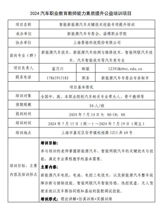 上海的教師能力素質提升培訓活動,將于7月15日-19日在嘉定同濟大學科技園舉辦。本場培訓由新能源汽車專委會、淄博職業學院承辦,景格職業教育研究院協辦。優越的地理位置、雄厚的產業基礎、專業的的師資力量,讓這場培訓呈現出獨特的亮點與特色。