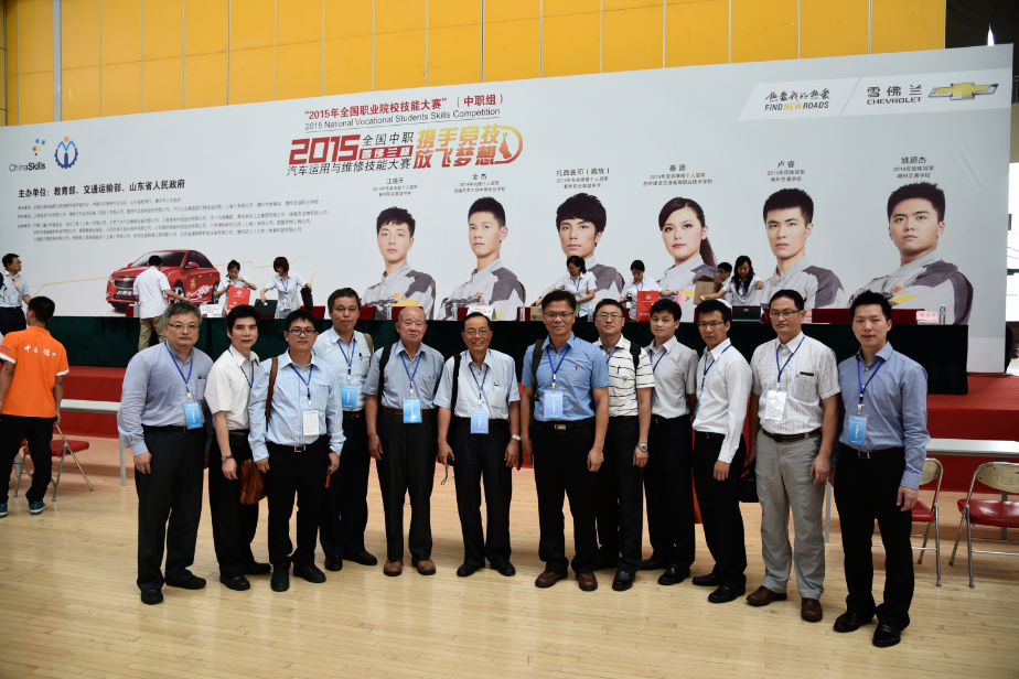 為促進兩岸汽車職業教育交流, 2015年全國中職“雪佛蘭杯”汽車運用與維修技能大賽期間,大賽組委會特邀請臺灣汽車工程學會榮譽理事長,世界技能大賽華人裁判黃靖雄教授等20多名專家前來指導交流。