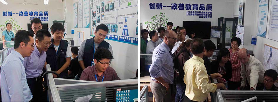 2014年10月21日,上海市教育委員會(huì)、德國(guó)普法基爾辛國(guó)立職業(yè)學(xué)校、 上海電子信息職業(yè)技術(shù)學(xué)院領(lǐng)導(dǎo)一行人來(lái)到‘景格學(xué)生多媒體工作室’參觀(guān)調(diào)研。