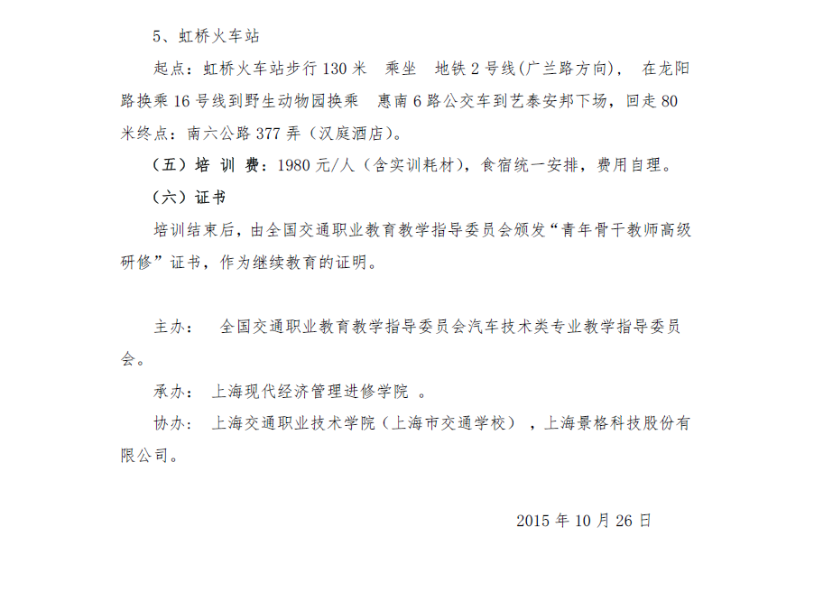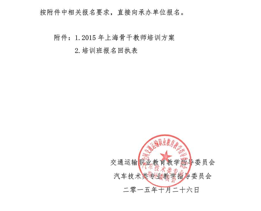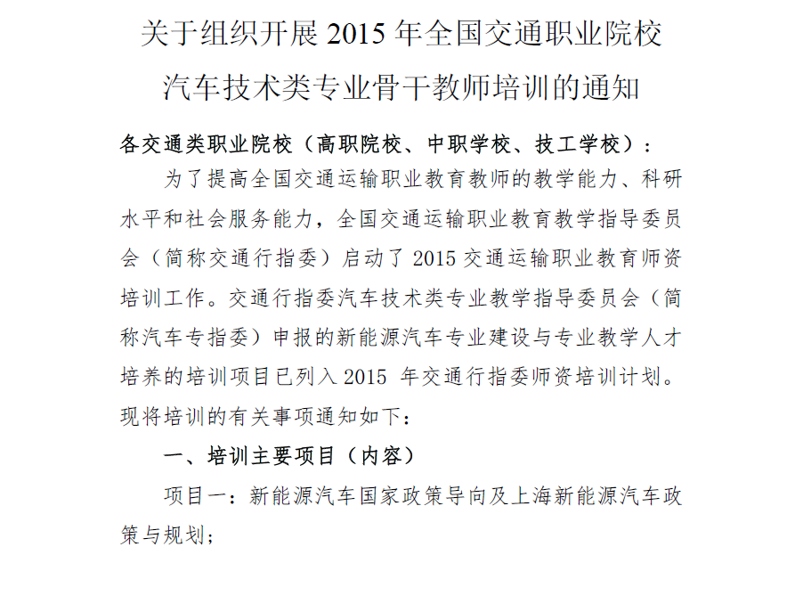 2015 年全國交通職業院校汽車技術類專業骨干教師培訓活動通知