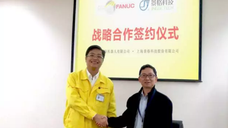 2017年,上海景格科技股份有限公司與上海FANUC機(jī)器人有限公司正式簽約達(dá)成戰(zhàn)略合作關(guān)系,攜手研發(fā)工業(yè)機(jī)器人相關(guān)專業(yè)課程、教具等合作項(xiàng)目。景格科技鄭玉宇先生、發(fā)那科戴琦部長(zhǎng)共同出席并完成現(xiàn)場(chǎng)簽約。