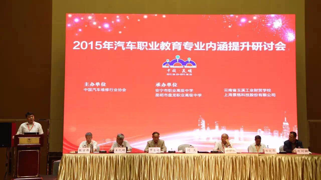 2015年8月4日,由中國汽車維修行業(yè)協(xié)會主辦,上海景格科技股份有限公司、安寧市職業(yè)高級中學(xué)、昆明市盤龍職業(yè)高級中學(xué)、云南省玉溪工業(yè)財(cái)貿(mào)學(xué)校共同承辦的第八屆“汽車職業(yè)教育專業(yè)內(nèi)涵提升研討會”在昆明云安會都酒店隆重召開。