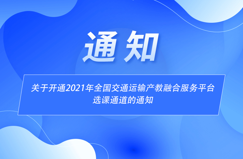 為深化產(chǎn)教融合,促進院校物流及汽車相關(guān)專業(yè)高質(zhì)量發(fā)展,保障全國交通運輸產(chǎn)教融合服務(wù)平臺(以下稱“平臺”)第三階段(2020—2021學(xué)年第二學(xué)期)工作有序、高效運行,平臺選課通道將于2021年1月25日9: 00起正式開通,為各院校提供優(yōu)質(zhì)的課程資源和服務(wù),現(xiàn)將在線選課相關(guān)事宜通...