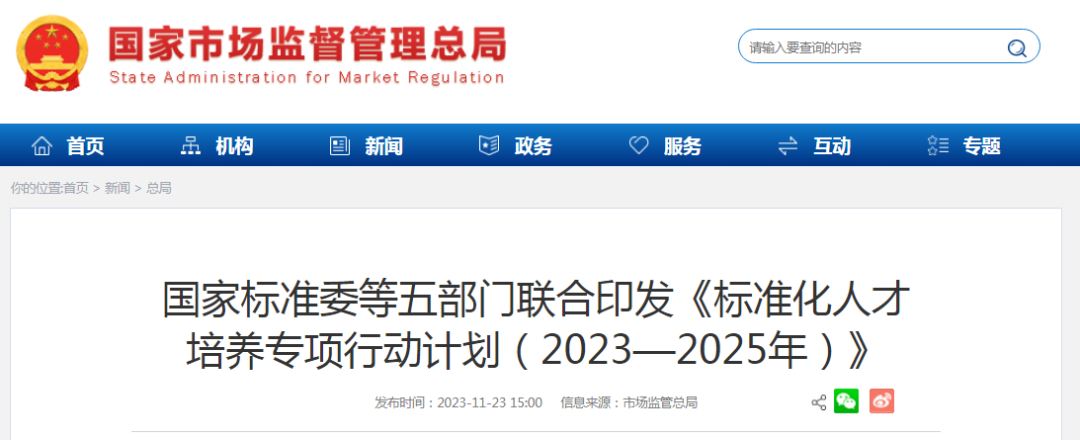 提出建立標準化人才職業能力評價機制,開展標準化領域職業技能培訓和水平評價,提高標準化從業人員職業技能水平,培養一批標準編審、實施和服務能手,打造一支高素質標準化行政管理隊伍。