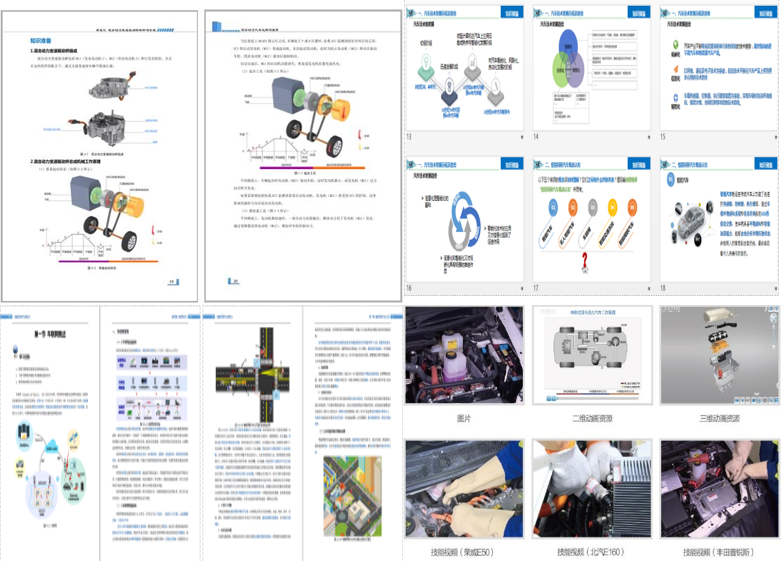實訓課程內容全面,每門課程包括教材、PPT、動畫、技能視頻、工作頁、技能評價表。八門實訓課程教材均采用項目化課程模式,實訓項目來源于新能源汽車企業典型工作任務,經過專業教學設計加工,便于教師靈活選取教學內容,組織實訓教學過程。