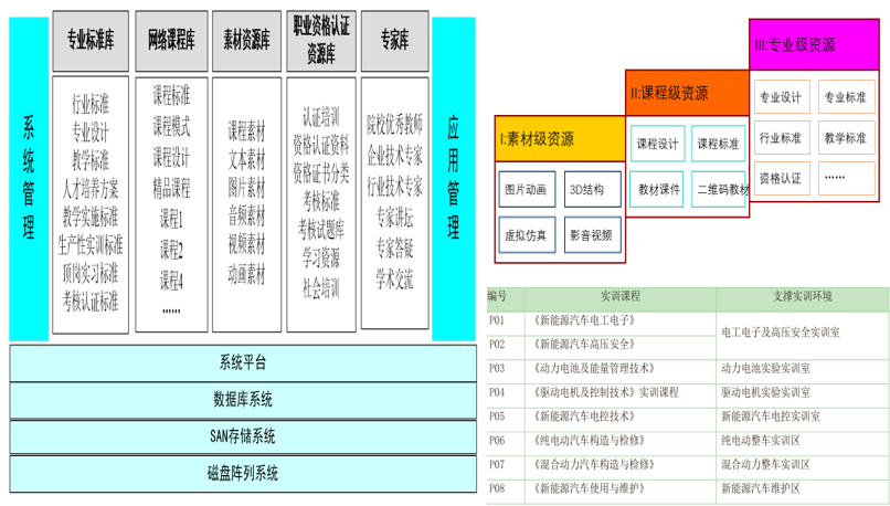 實訓課程內容全面,每門課程包括教材、PPT、動畫、技能視頻、工作頁、技能評價表。八門實訓課程教材均采用項目化課程模式,實訓項目來源于新能源汽車企業典型工作任務,經過專業教學設計加工...